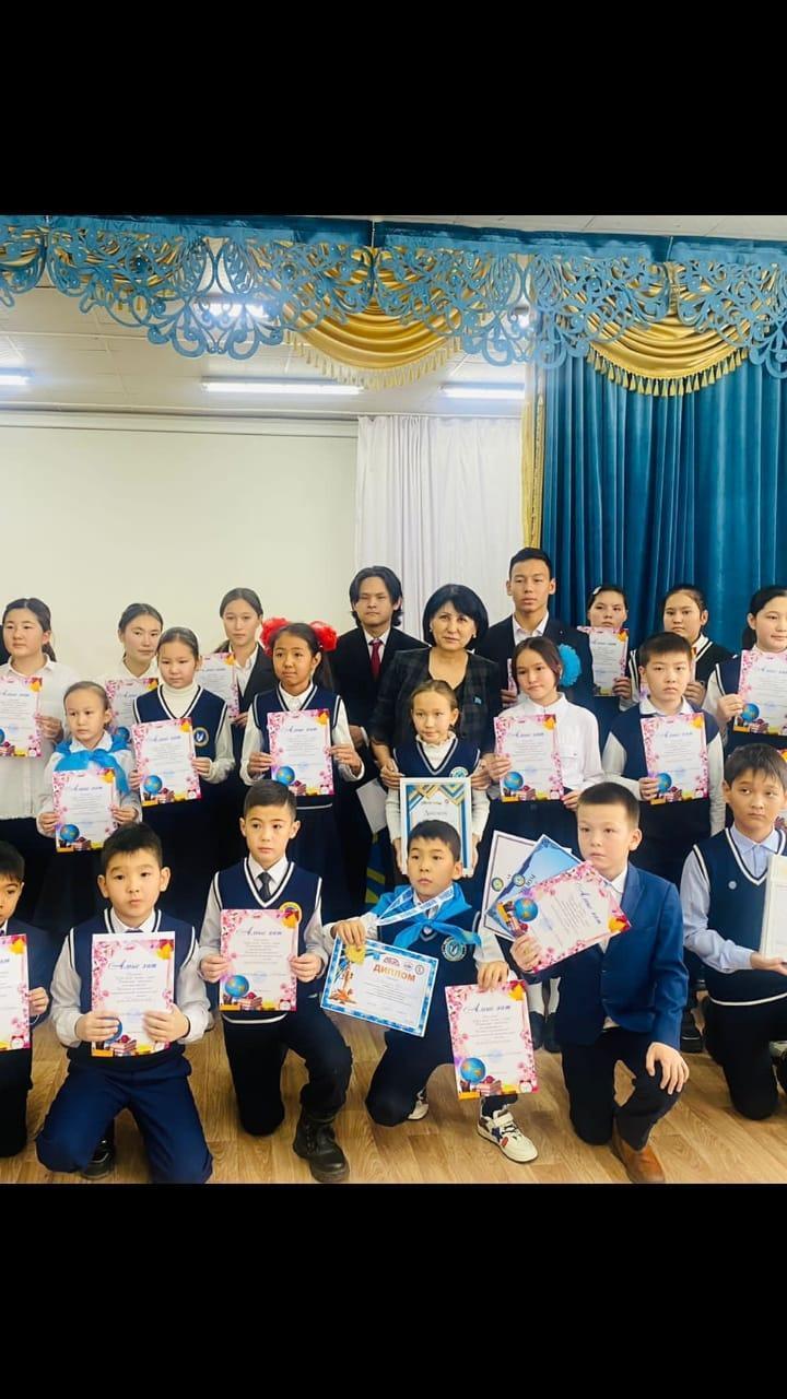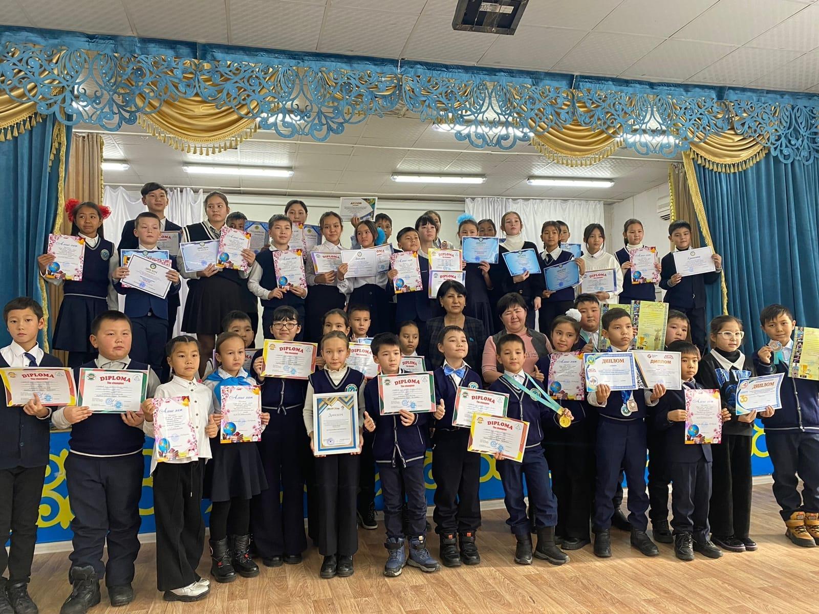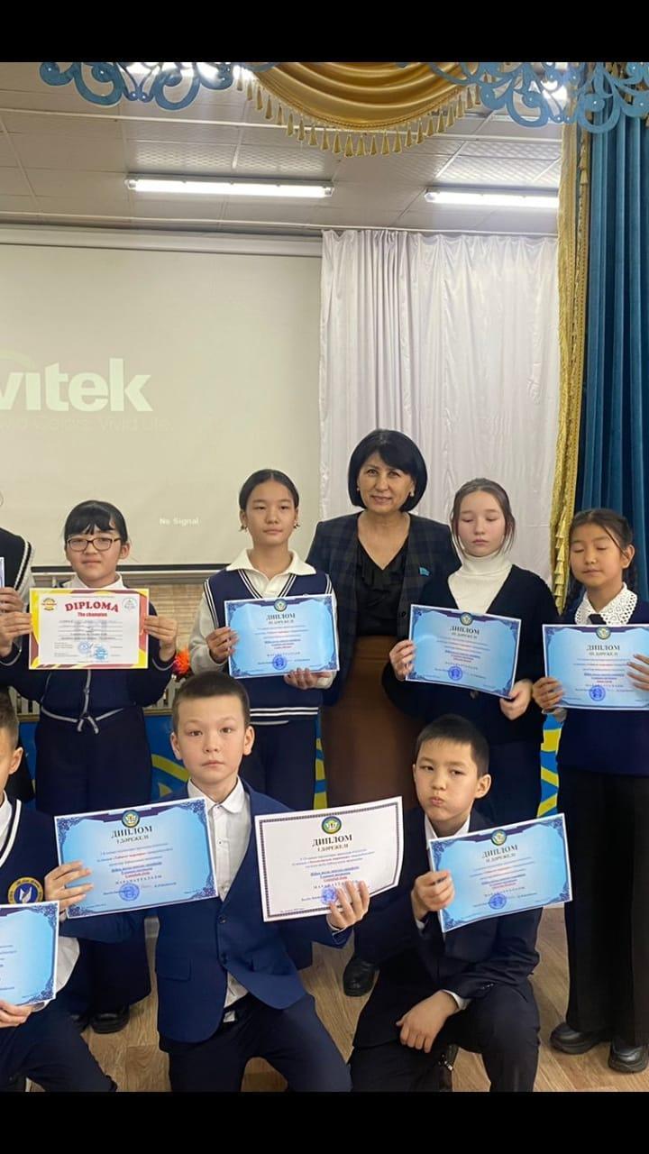 16 январь 2023 0 1 2 3 4 5 Оқушыларды марапаттау 2022-23 оқу жылы 2022-2023 оқу жылының 1 жарты жылдығында республикалық ғылыми жоба байқауларының,пән олимпиадаларымен спорттық жарыстарының жеңімпаз дарынды оқушыларды марапаттау іс шарасы өтті.