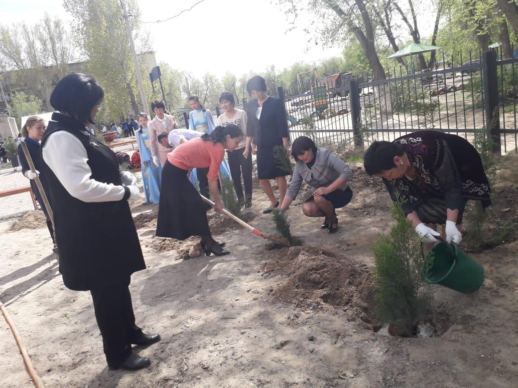 Тұңғыш президент Н.Ә Назарбаевтың «Жасыл ел» бағдарламасын жүзеге асыру мақсатында және көктемгі көгалдандыру-көгеріштендіру екі айлығының барысында «Жібек жолы» мектеп-лицейінде көгалдандыру-көгеріштендіру жұмыстары басталды. «Бір тал кессең, он тал ек» -атты ұранымен мектебіміздің ұстаздарының және ата-аналардың көмегімен мектеп ауласына неше түрлі қылқан жапырақты сәндік ағаштар мен гүлзарларға түрлі гүлдердің көшеттері отырғызылды. Әр сыныптың ата-аналары қолдарынан келген көмектерін аяMay, мектеп ауласына шырша, тополь, сосна, уксусное дерево,неше түрлі жеміс ағаштары мен гүл отырғызды. Аталған акцияға мектебіміздің басшысы А.Т. Джангарашева ханымда өз отбасымен қолдау көрсетіп, немерелерімен мектеп ауласына ағаштар отырғызып, өсіп келе жатқан жас ұрпаққа үлгі-өнеге көрсетті.