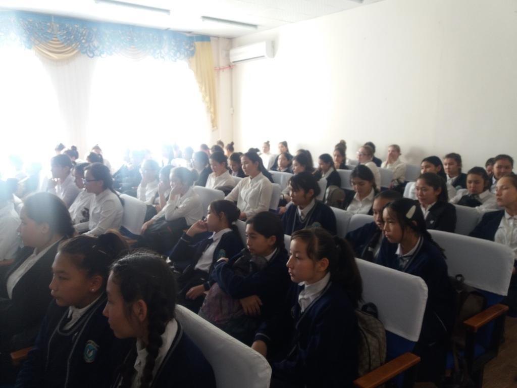 3. Мектеп медбикесі «Қыз денсаулығы » атты баяндама оқыды. Оқушы қыздарға жеке бас гигиена туралы, қыздардың гигиеналық талаптарды орындау керектігін, қыздардың шаштары туралы тоқталып кетті.