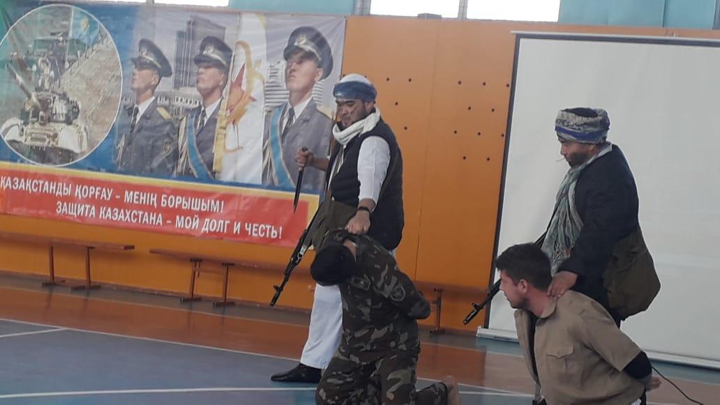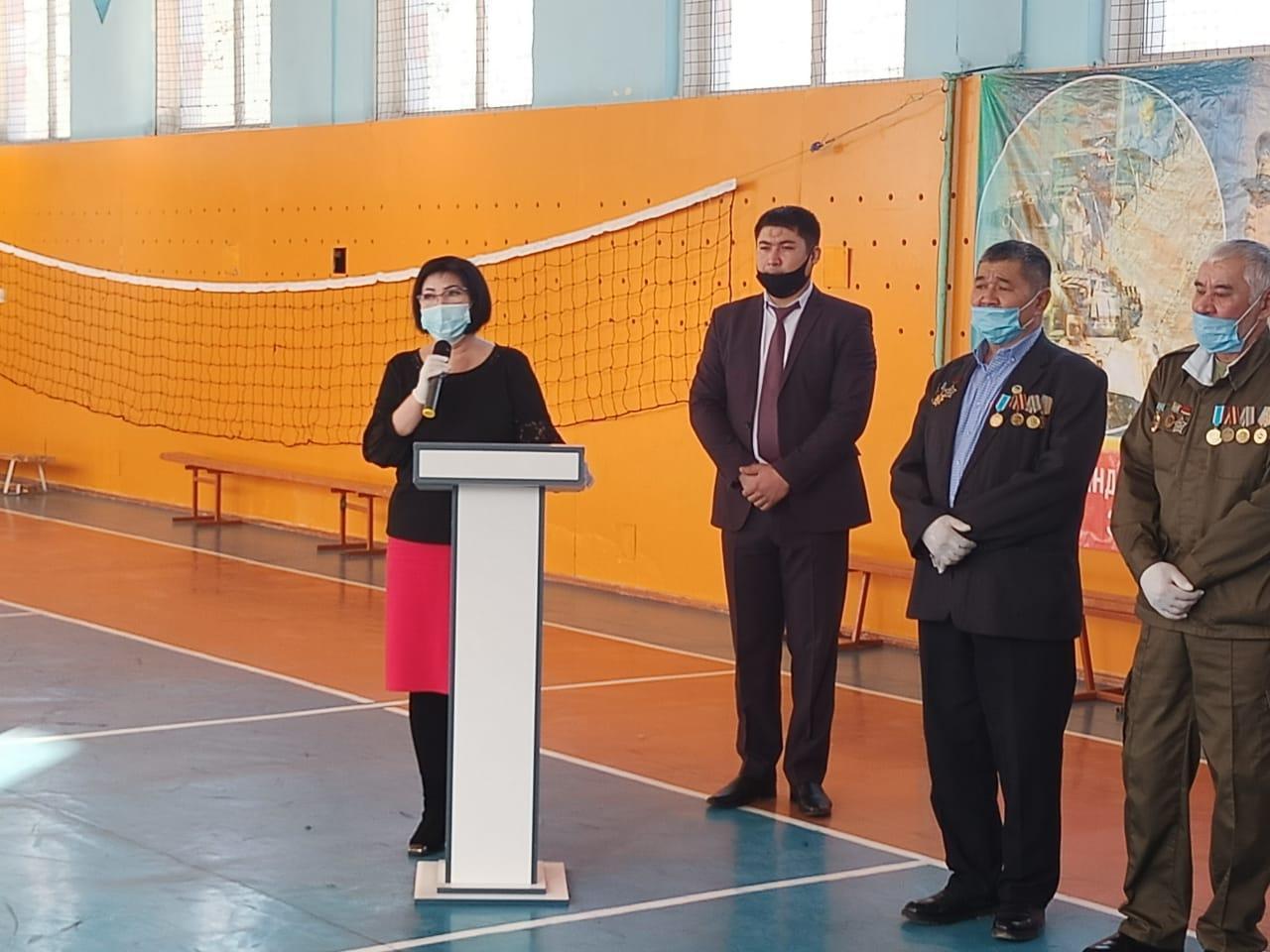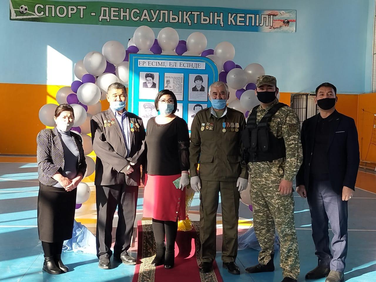 А.Т. Джангарашева сонау Ауған жерінде қару асынып мұң арқалаған сын сағаттарда бірін-бірі бауыр дескен азаматтар бүгінгі күні еліміздің түкпір-түкпірінде еңбек етіп жүрген ағаларымызға ұзақ ғұмыр , денсаулық, жанұяларына аманшылық тілегін білдірді. Мектеп ұстаздары дайындаған "Қанжардан құтқарған қазақ әні"Той жыры " көрінісі, ән шашуларда орын алды. 10-11 сыныптың ұлдарына әскер қатарына тіркелу күәліктерін табыстау қадірлі қонақтарымыз салтанаты түрде тапсырды. Кездесудің 2-ші бөлімі мектептер арасындағы волейболдан жолдастық кездесумен жалғасын тапты.