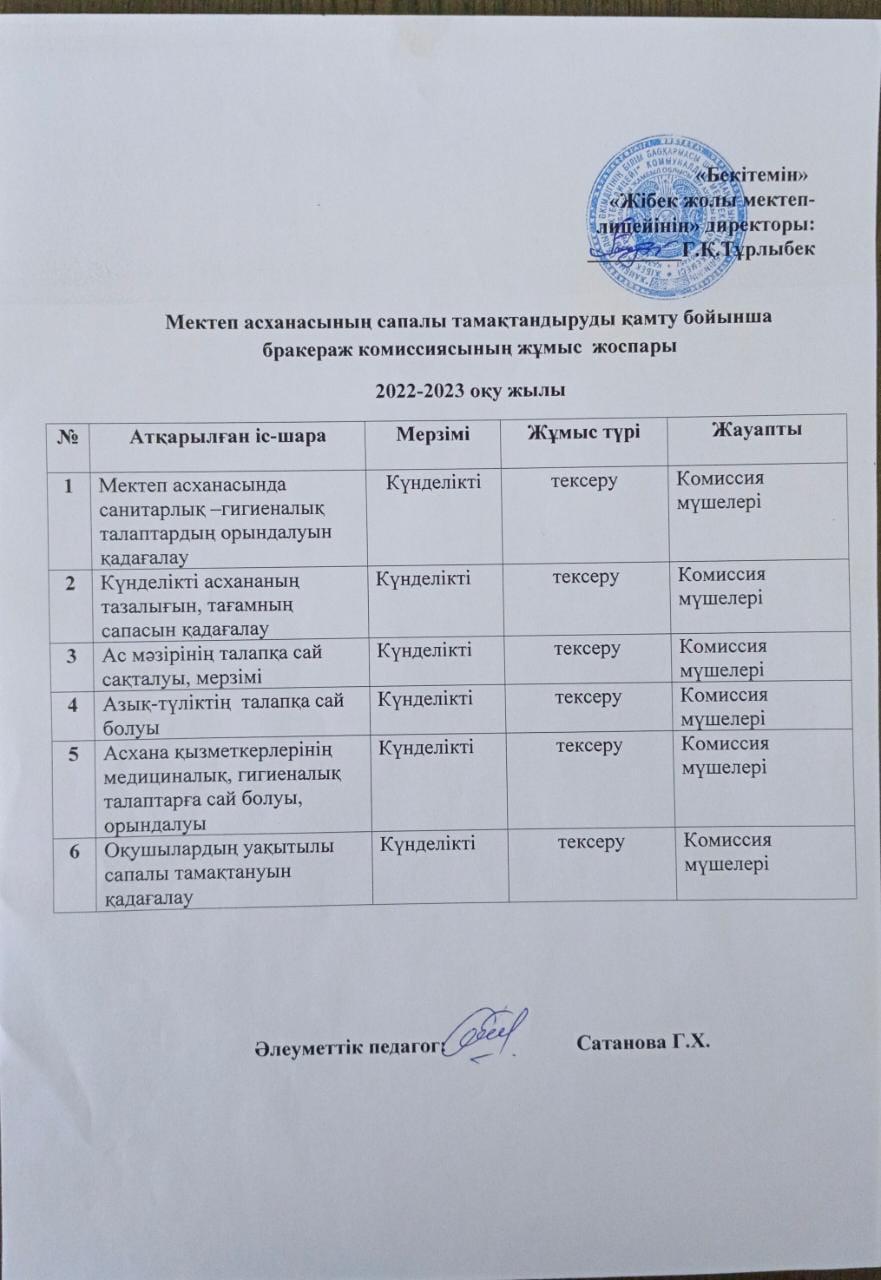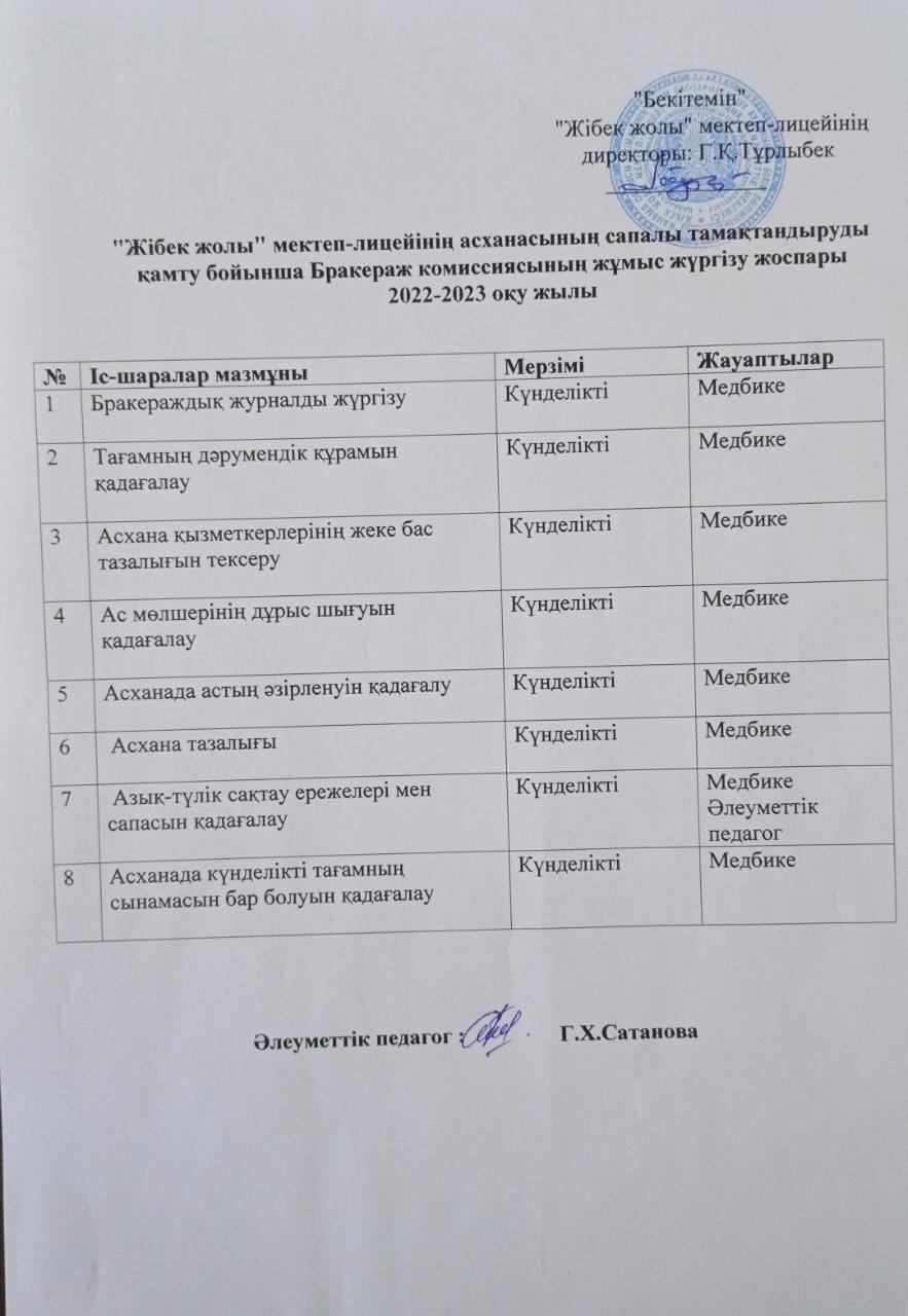 Бракераж комисиясының жұмыс жүргізу жоспары » Жібек жолы мектеп-лицейі