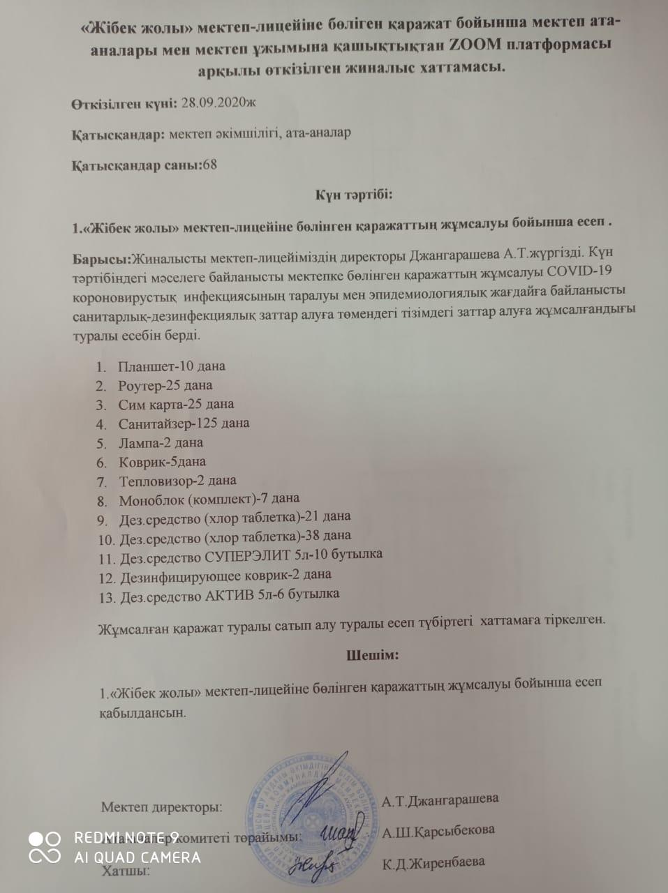 Мектепке бөлінген қаражаттың жұмасалуы бойынша есеп » Жібек жолы мектеп-лицейі