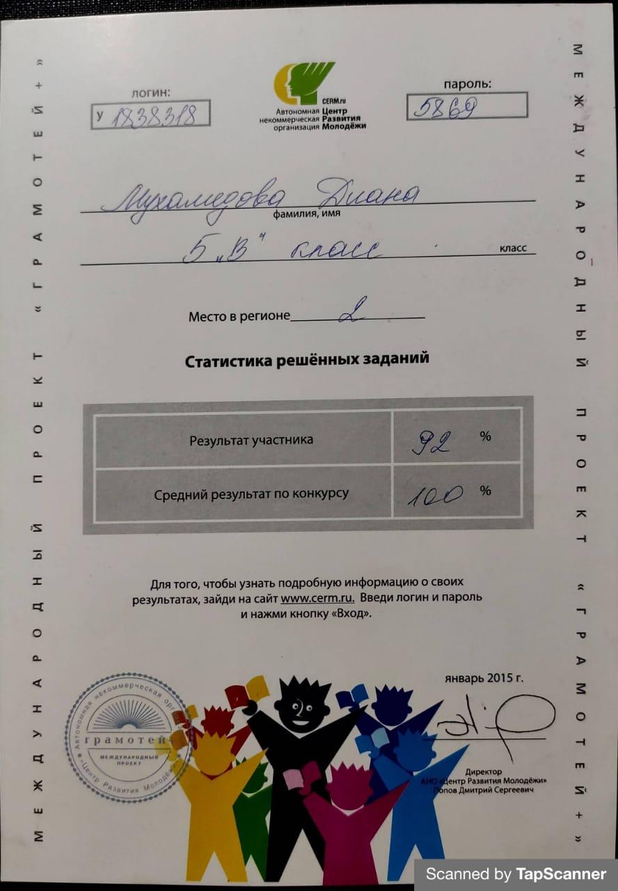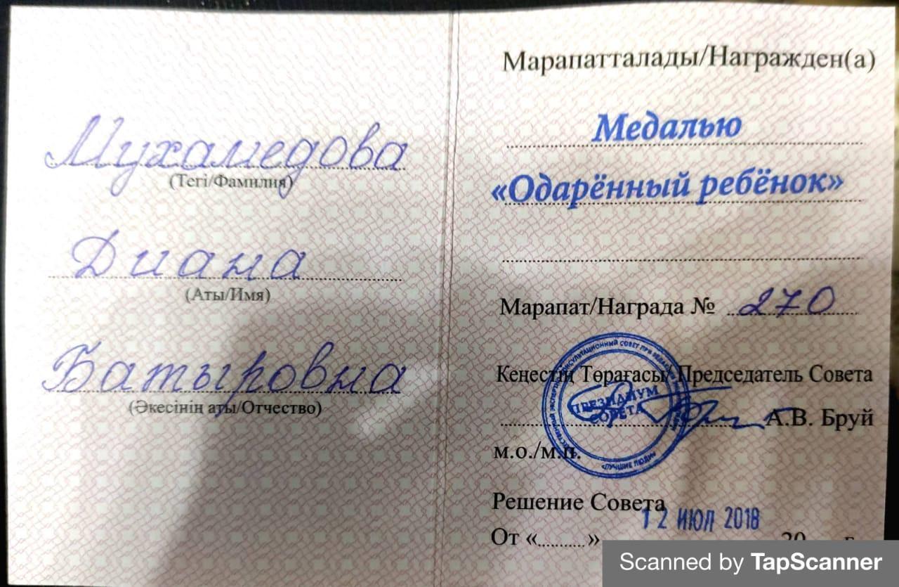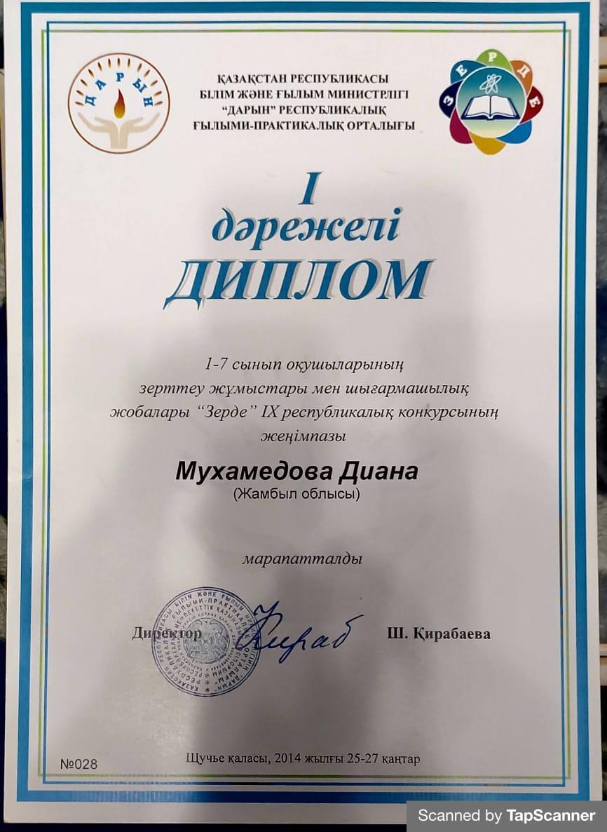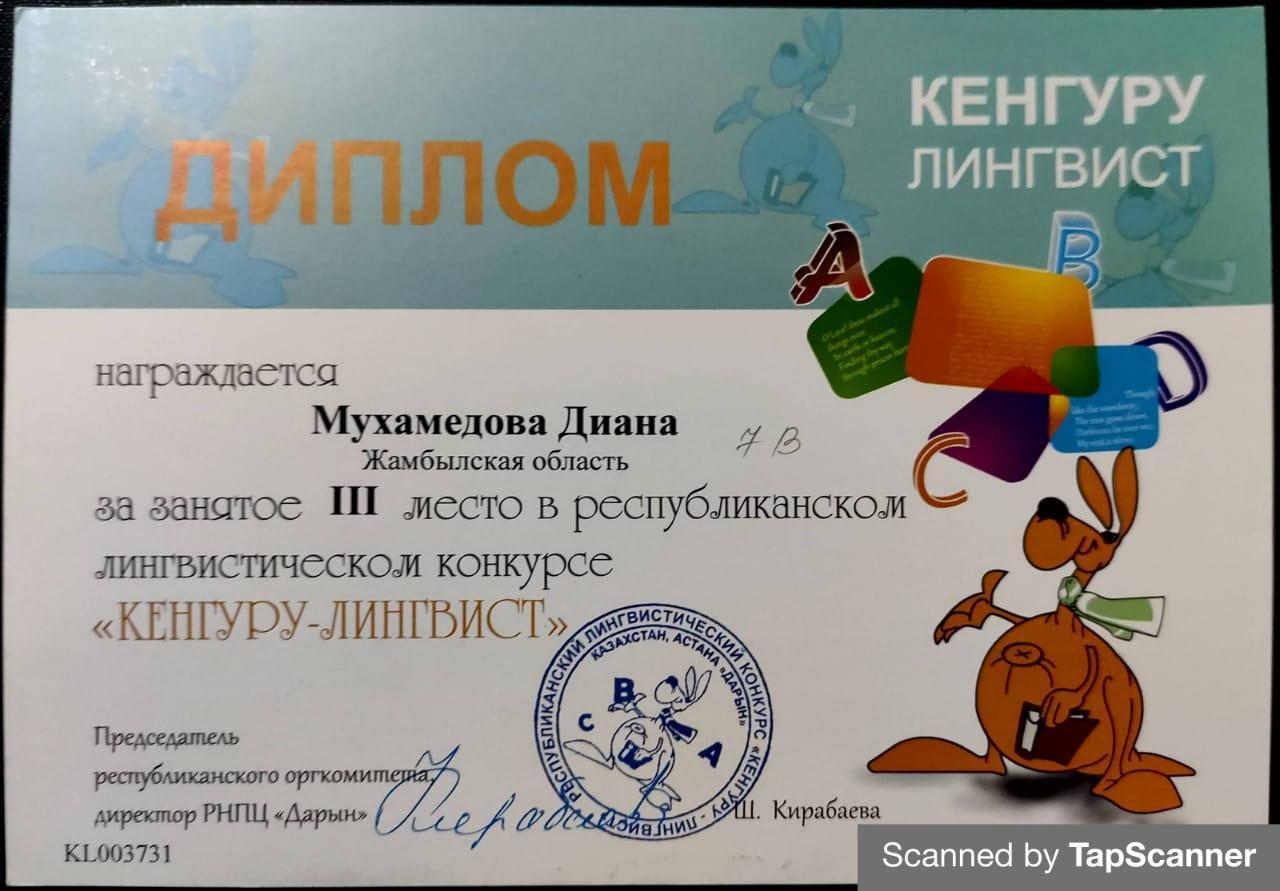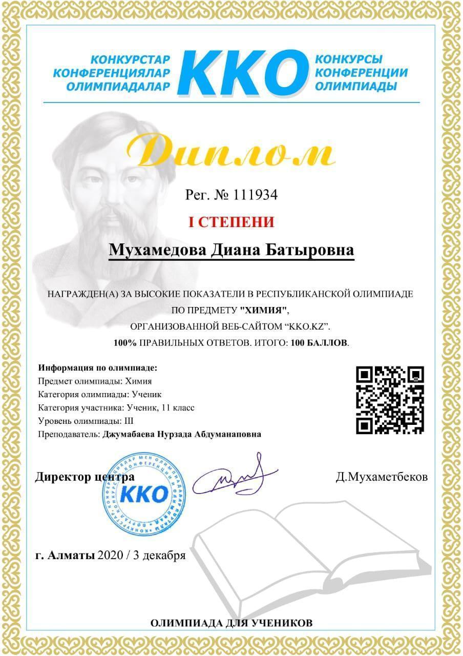 » » 2020-2021 оқу жылындағы 11-сынып оқушысы Мухамедова Диананың жетістіктері