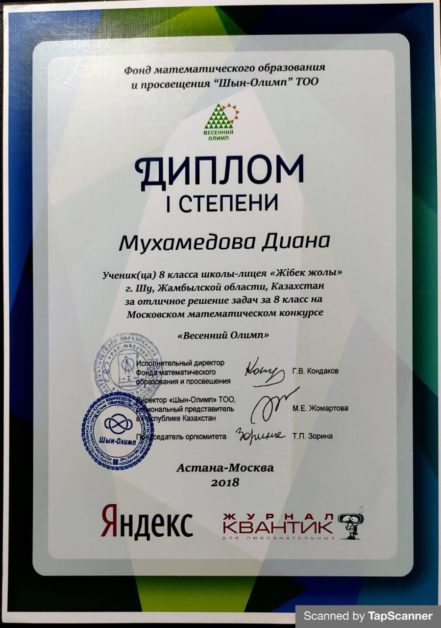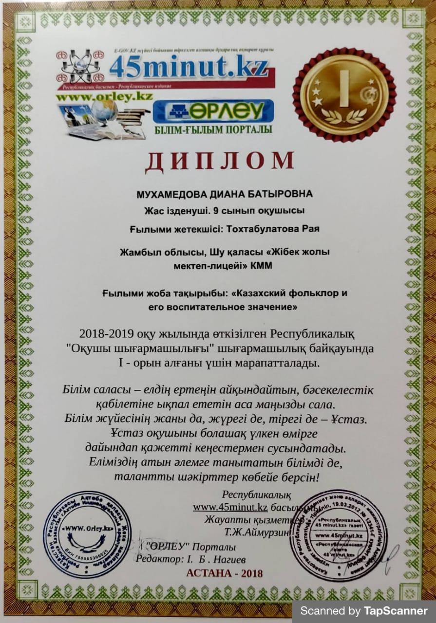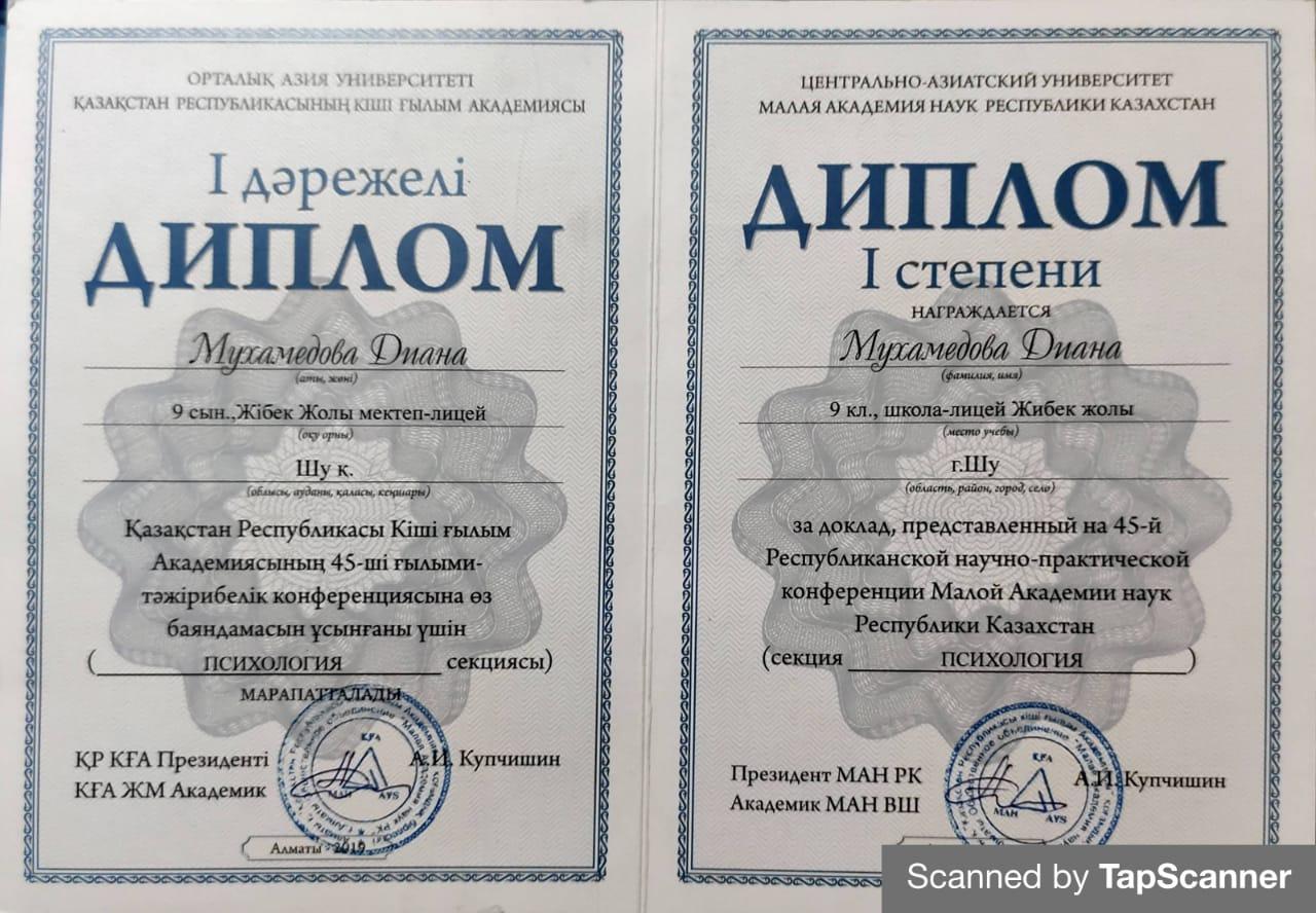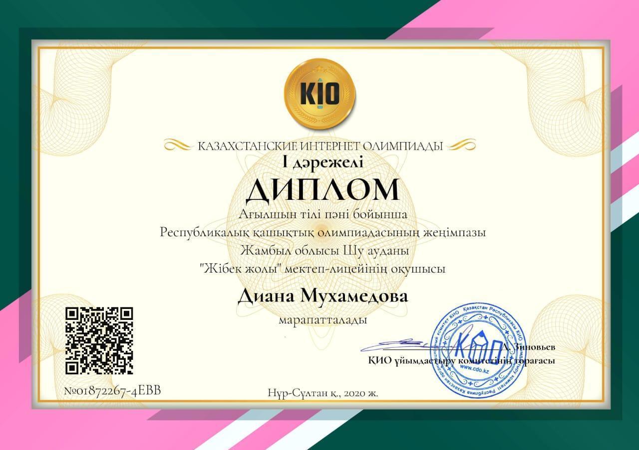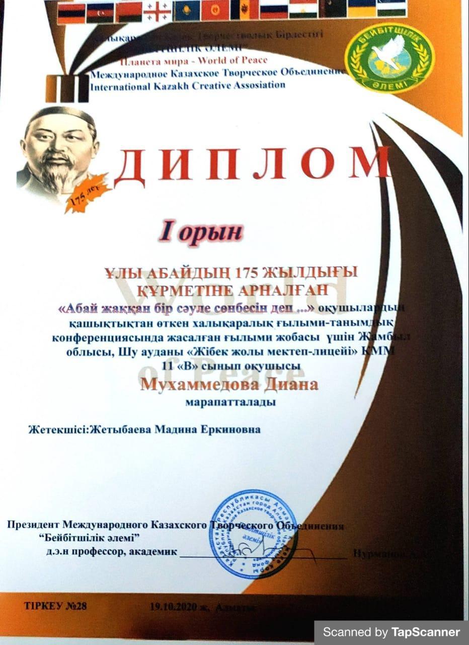 2020-2021 оқу жылындағы 11-сынып оқушысы Мухамедова Диананың жетістіктері » Жібек жолы мектеп-лицейі