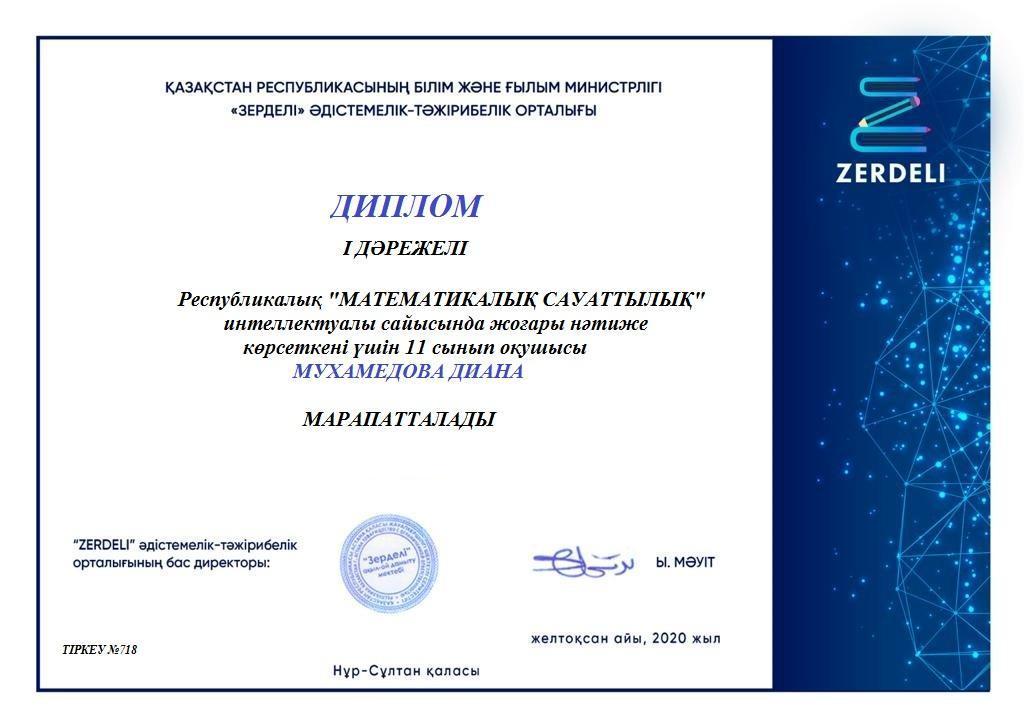 » » 11-сынып оқушысы Мухамедова Диананың жетістіктері