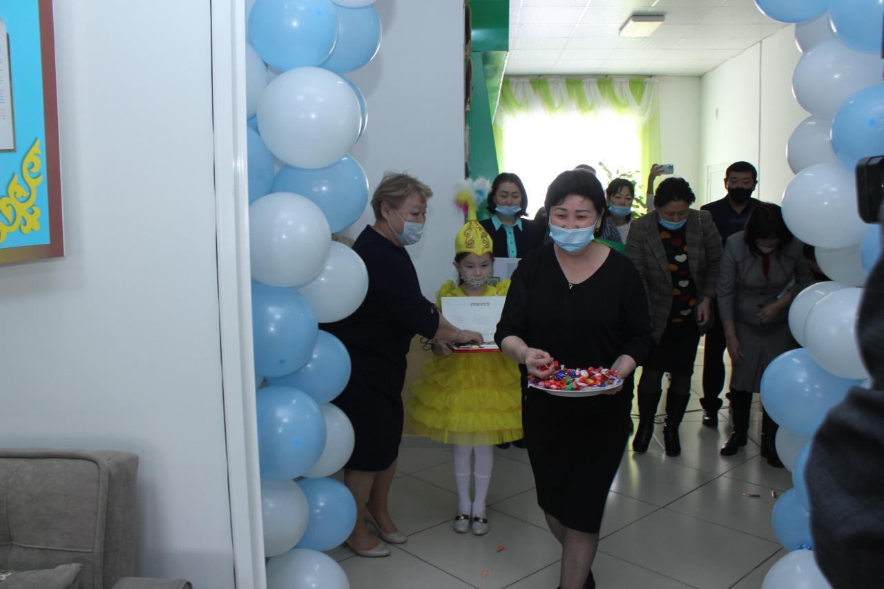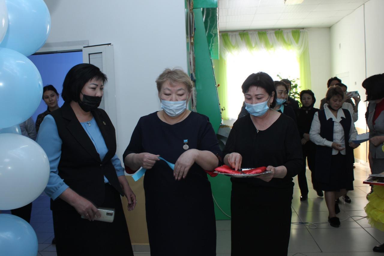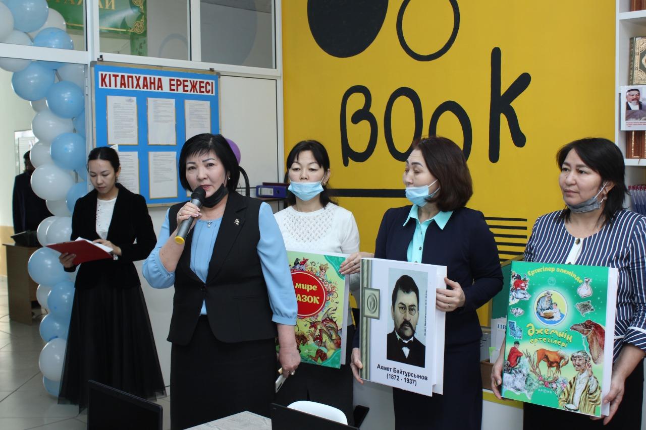 Кітапхананың тұсауын ардагер ұстаз, 2021 жылы ҚР Президенті Қасым-Жомарт Тоқаев табыс еткен Ыбырай Алтынсарин төсбелгісінің иегері Жұмакүл Қозыкөрпешева мен мектебіміздің ұлағатты ұстазы, «Қазақстан ұстазы» төсбелгісінің иегері Пернекул Қожагельдиева кесті.