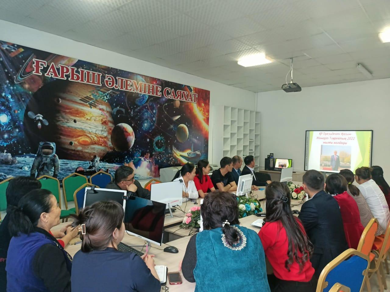 Бүгін ,яғни 2022 жылдың 16 наурызында ҚР Президенті Қасым – Жомарт Кемелұлы Тоқаев “Жаңа Қазақстан” : Жаңару мен Жаңғыру тақырыбында жолдау жасады. Осыған орай Жібек жолы мектеп –лицейінің ұжымы академик,профессор Оңғарбек Әліпбеки атындағы геоақпараттық технологиялар орталығында жиналып, ҚР Президентінің жолдауын зейін қойып, тыңдады. Бұл Жолдау президенттің еліміздің саяси жүйесін кешенді жаңғырту бағдарламасын ұсынуымен ерекшеленді. Қатысушылар Мемлекет басшысының жолдауында айтылған ұсыныстар мен өзгерістерді біліп, Жаңа Қазақстанды құру жолында ел ертеңіне сеніммен қарайтынын жеткізді.