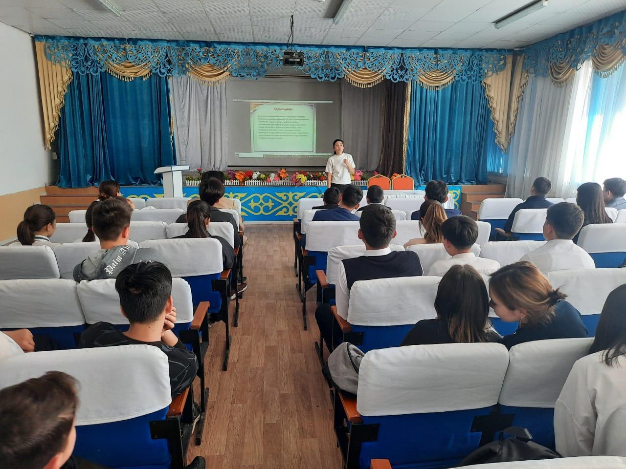 "Жібек жолы мектеп лицейінде" 2022 жылдың 6 сәуірі күні Шу қалалық Жастар ресурстық орталығының психолог маманы Төлеубек Нұрбике Болатқызы 8-9 сынып оқушыларымен кездесу өткізді. Тақырыбы "Есірткісіз болашақ". Мақсаты: Жасөспірімдердің зиянды әдеттерден аулақ болуға тәрбиелеу. Нашақорлық пен шылым шегуді болдырмау.