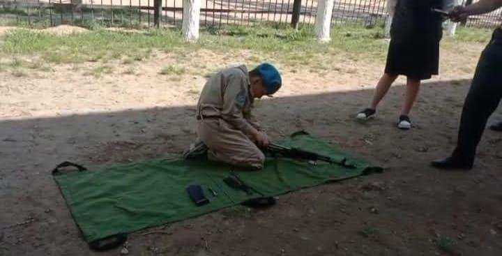 Оқушылар АК-74 Калашников автоматын бөлшектеу және құрастыру, атыс алаңында дәлдеу өнерін көрсетті.