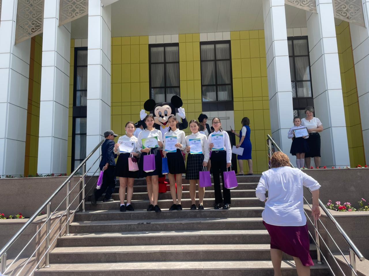 2022жылдың 18 мамырда мектеп-лицейіміздің бірқатар дарынды оқушылары аудан әкімі Сәкен Қаланұлы Арубаевпен білім бөлімінің басшысы Раймбеков Қуат Оразбекұлының қолынан облыс,