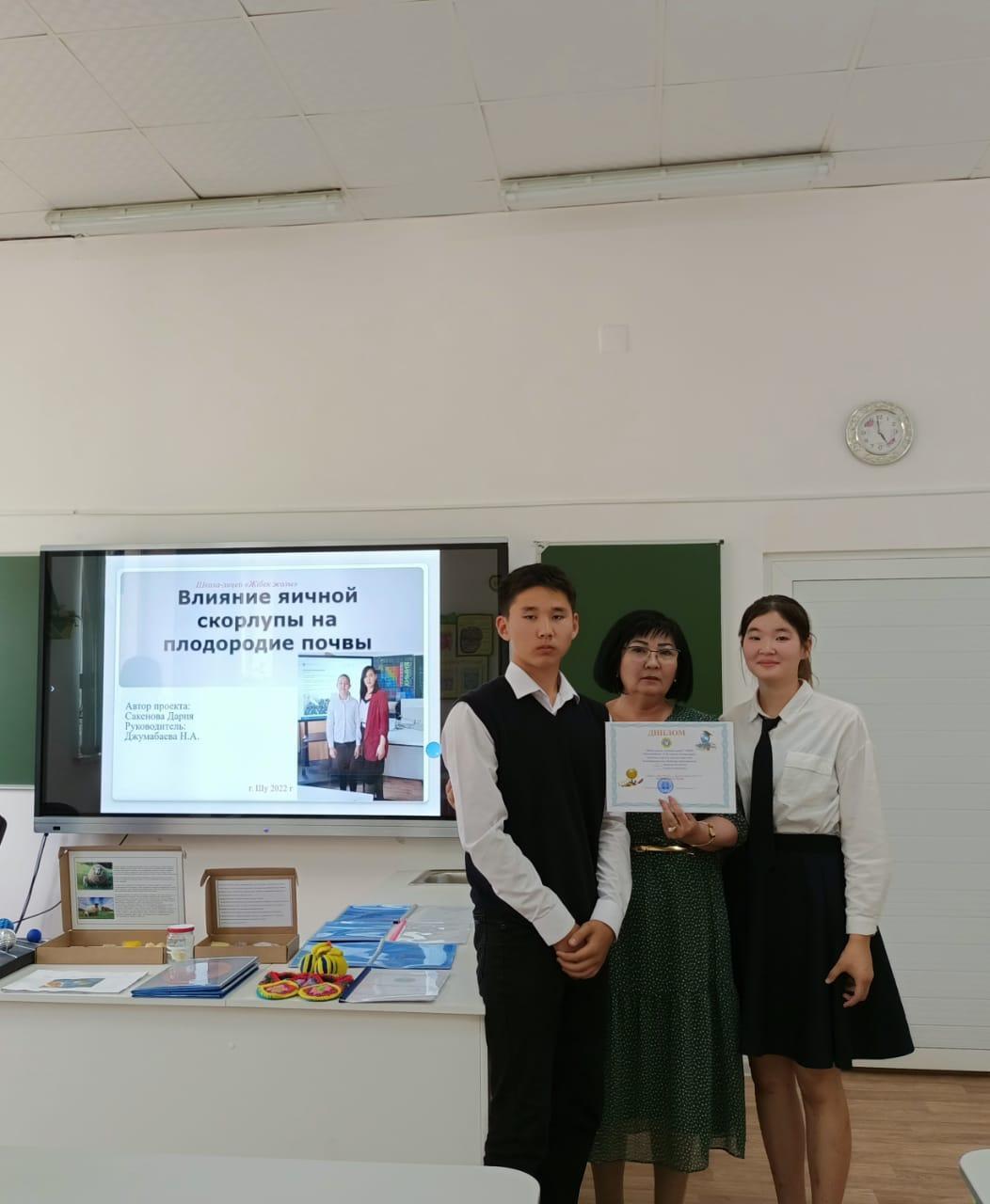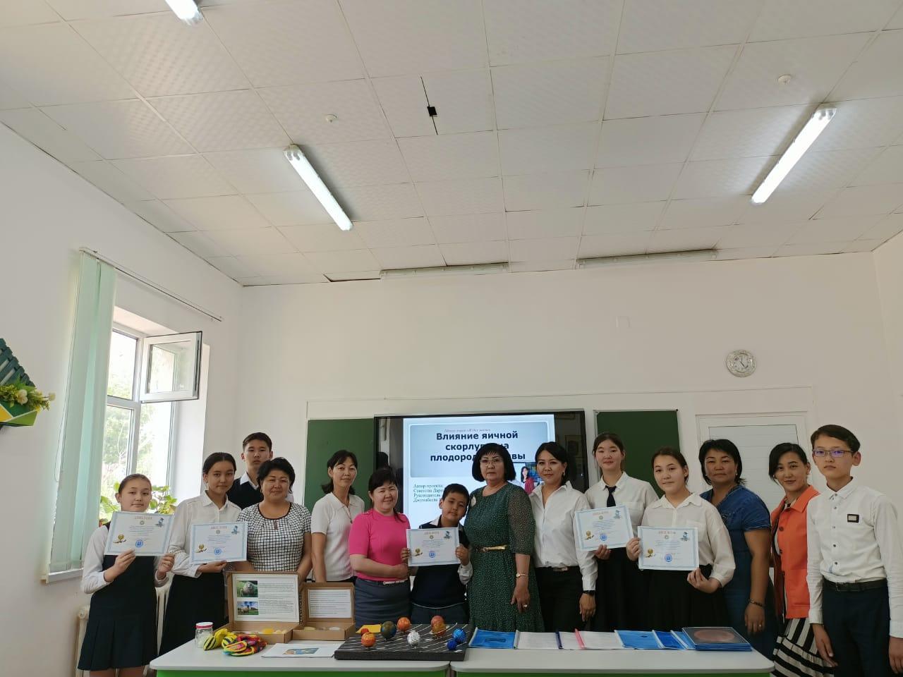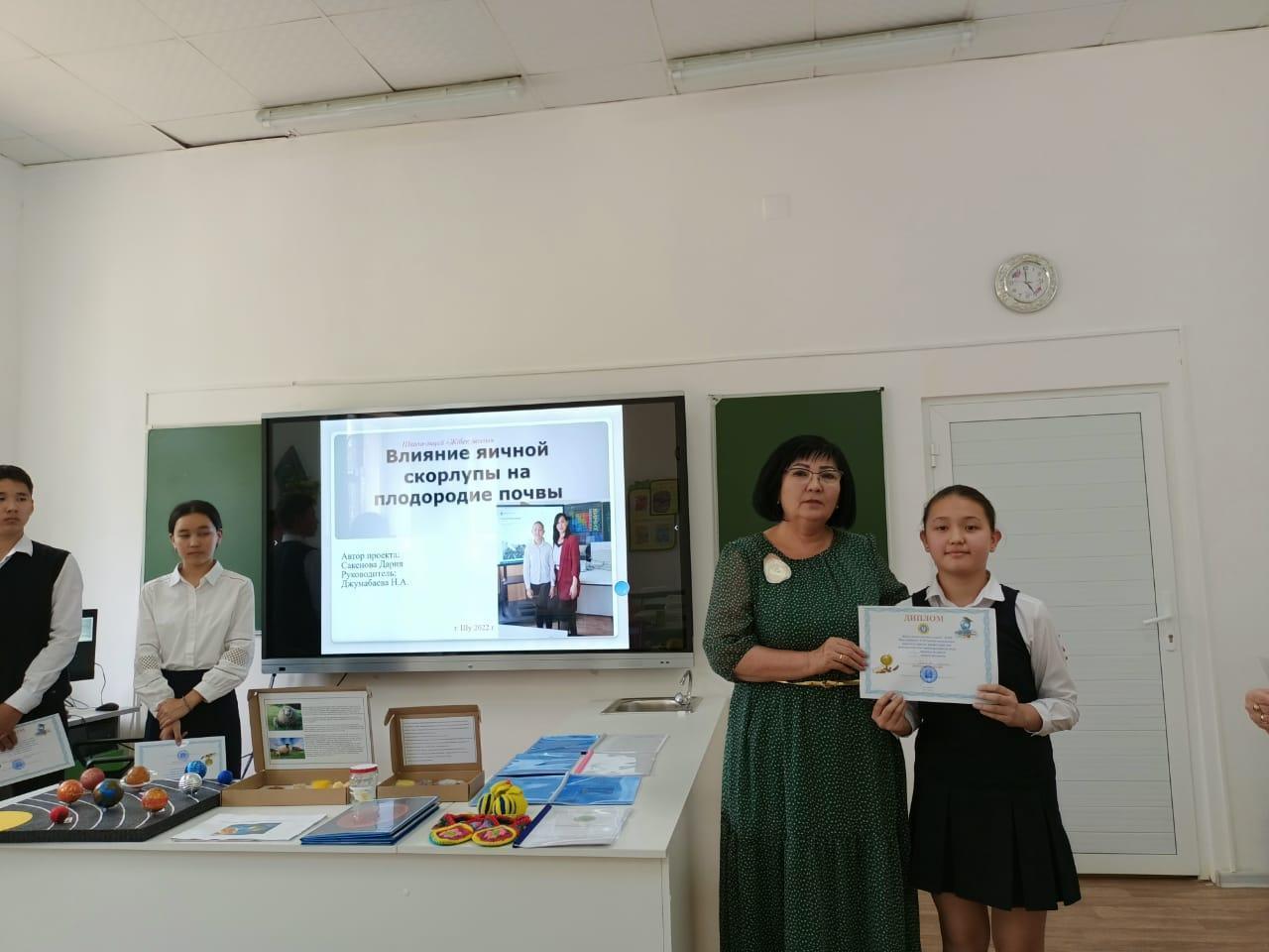 Қорытындысында 3 орынды 8 сынып оқушысы Айтқұл Гүлім және жұптық жұмысты орындаған 8 сынып оқушылары Ораз Санжар мен Азимхан Әнел алса 2 орынды 7 сынып оқушылары егіздер Жампоз Саят пен Жампоз Сая иеленді.1 орынды 6 сынып оқушысы Сакенова Дария алды.Әділ қазылардың барлық қойған сұрақтарына мүдірмей жауап берген ең кішкентай қатысушымыз 4 сынып оқушысы Ербол Алихан "Күн жүйесі және галактика " тақырыбын қорғап бас жүлдені иеленді.Жас ғалымдардың бастаған жұмыстарын ары қарай толықтыру бағытында ұсыныстарда айтылды.