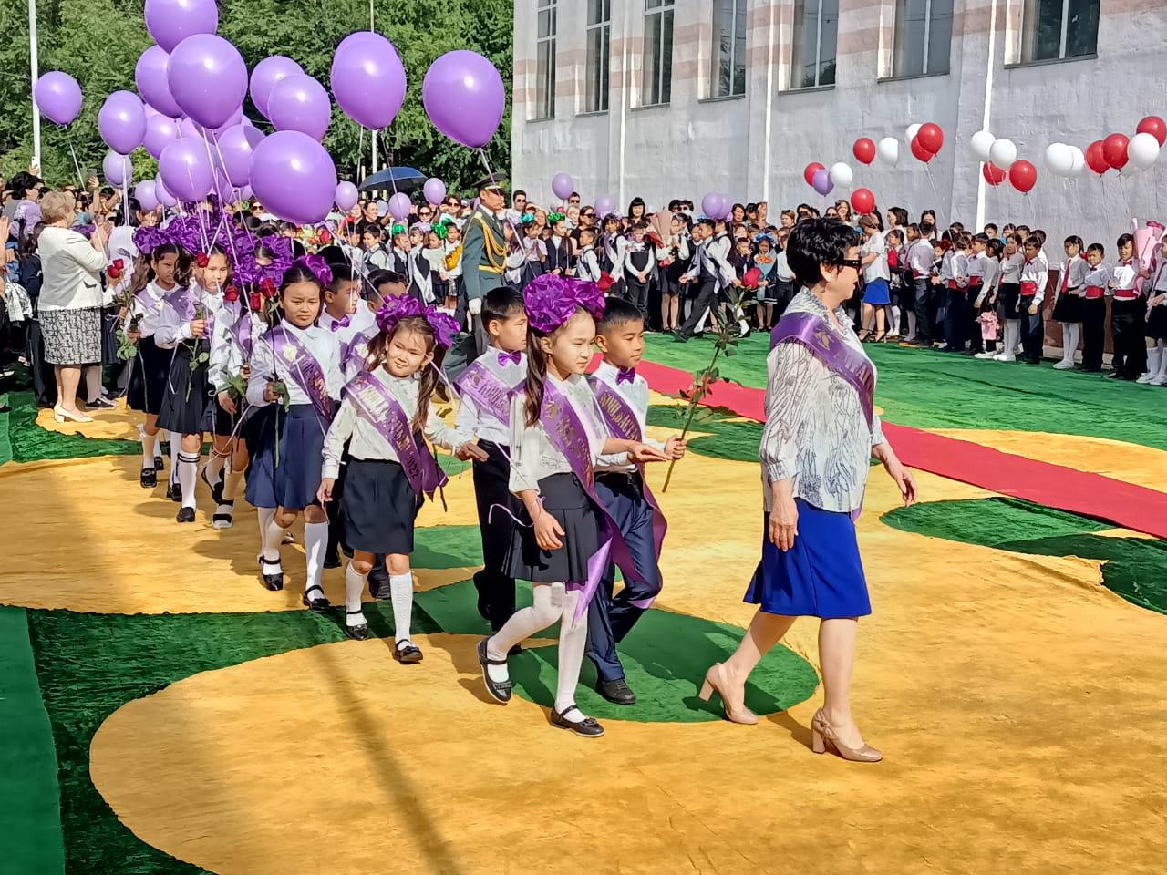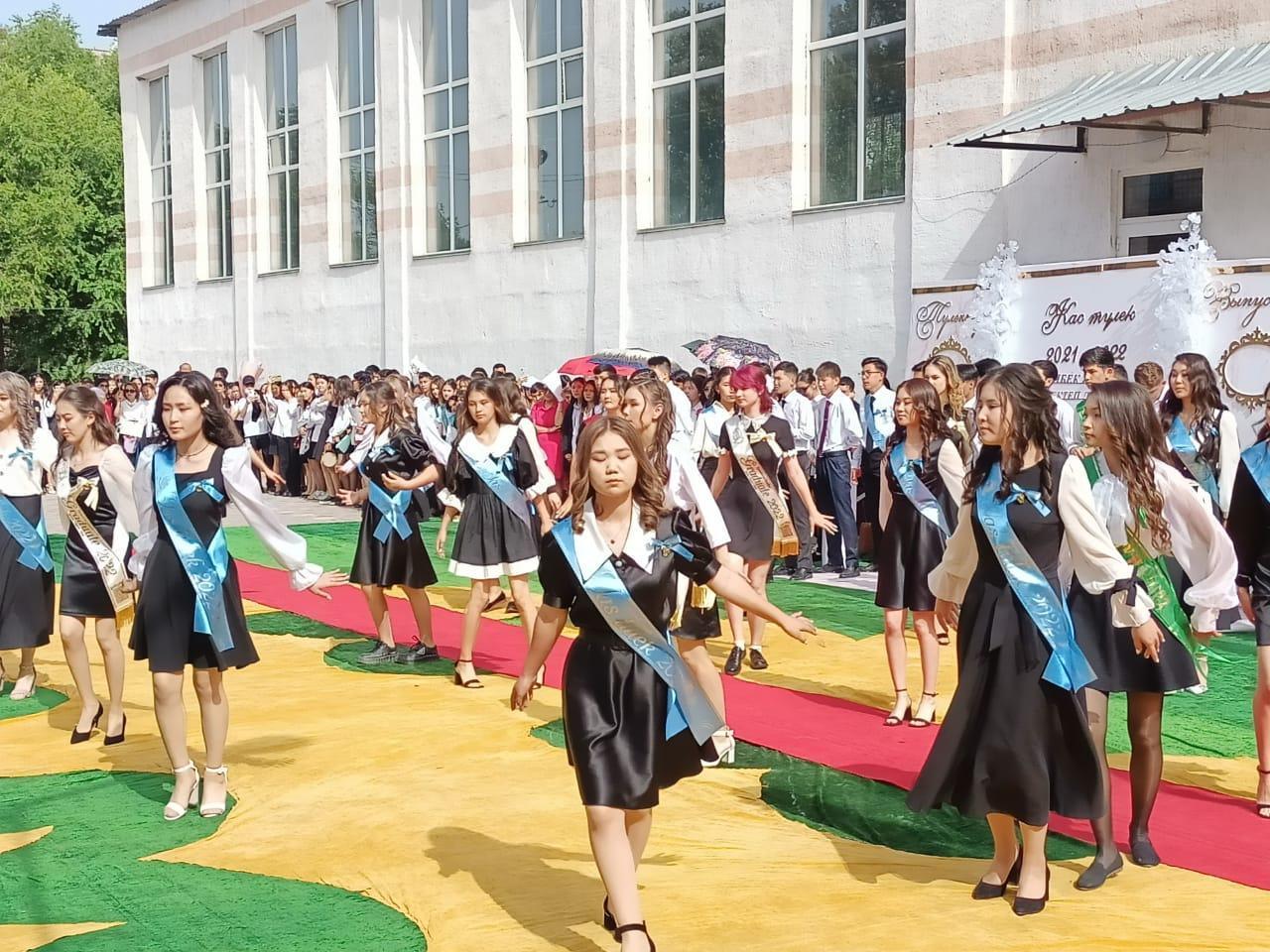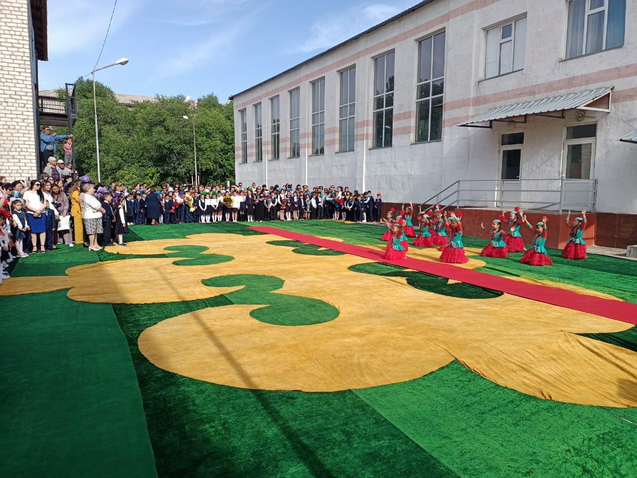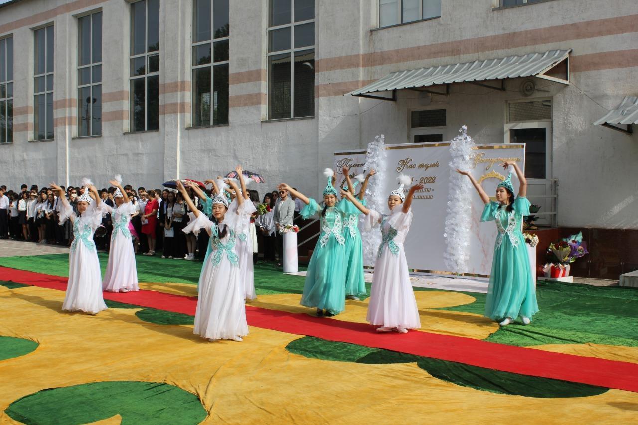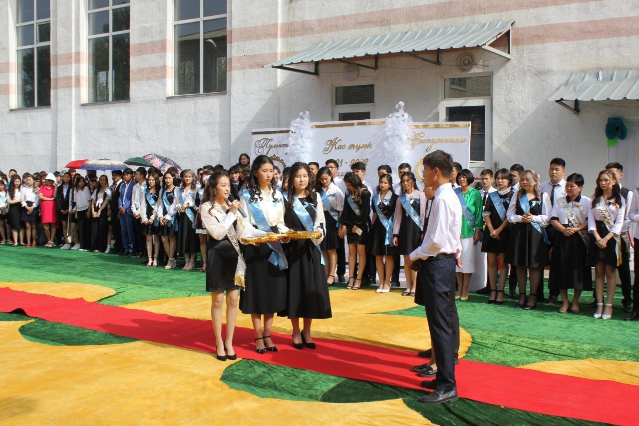 Күміс қоңырауды 1-сыныптың 3 оқушысы соғып, олардың қолынан түлектер алып, шаттықтың құшағында ұрпақтар сабақтастығының әдемі көрінісін жұрттың көз алдынан өткізді. Соңы қоштасу вальсіне ұласты.