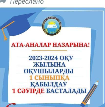 27 март 2023 0 1 2 3 4 5 Ата-аналар назарына! Ата-аналар назарына! “Жібек жолы мектеп-лицейі”2022-2023 оқу жылының 1 сәуірінен бастап 2023-2024 оқу жылына оқушыларды 1 сыныпқа қабылдау басталады.