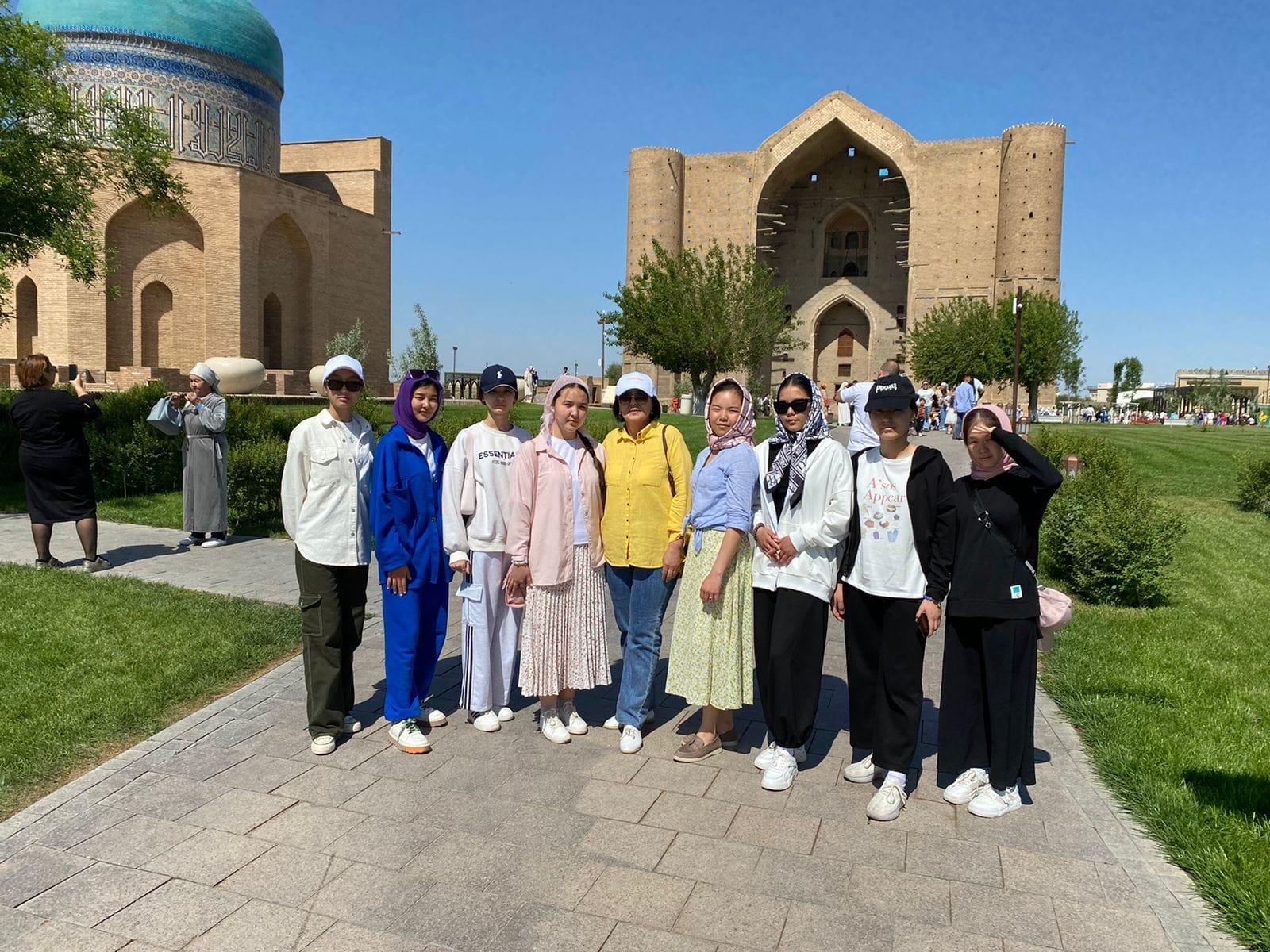 Түркістан өңірінде бірнеше ғасырдың куәсі болған тарихи ғимараттар, кесенелер мен киелі орындар жетерлік. Киелі орындар туралы балаларға тарихи-танымдық ақпараттар берілді. Саяхат ең алдымен Оңтүстік Қазақстан облысының оңтүстігі Қаратау бөктерінде Балабөген өзенінің бойында орналасқан Домалақ ана кесенесінен бастап, киелі орын Арыстан баб кесенесіне және мұражайға барып, Арыстан баб туралы мағлұмат алды. Бұл киелі орыннан соң Шәуілдір кентіндегі Отырар мұражайына саяхат жасап, «Отырар опаты» болған көне Отырар қаласының орнын, қаладағы моншаның орнына жүргізілген қазба жұмыстарын тамашалады. Түркістандағы Ахмет Яссауи кесенесіне саяхаттады. XV ғасырда Қожа Ахмет Яссауиге арнап тұрғызылған кесенесін аралап, ғажайып «Тайқазанды» көрді, тарихымен танысты.