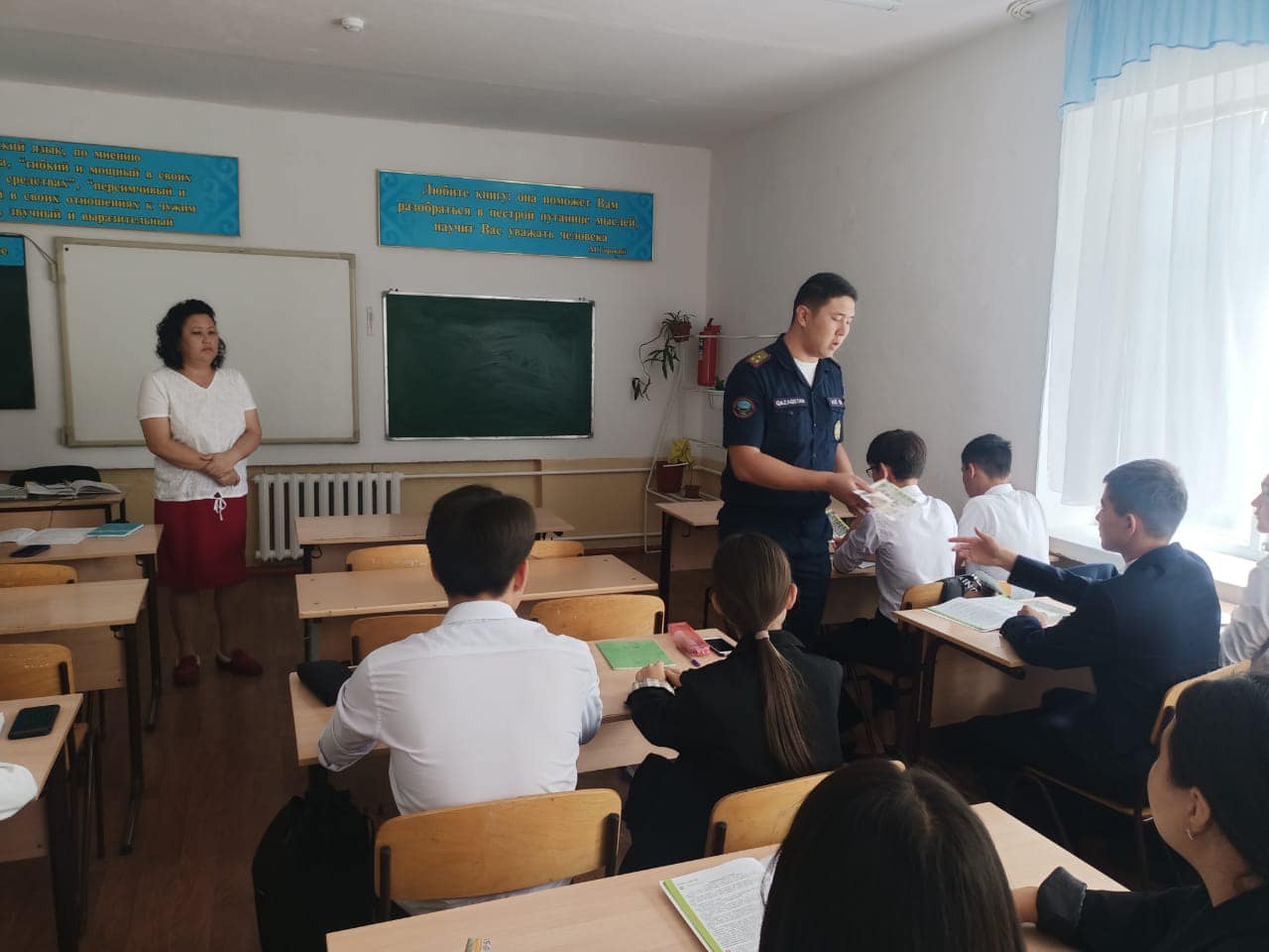 ың қыркүйек айының 12 күні Шу ауданы Төтенше жағдай бөлімінің қызметкері Пермебаев Марлен Берікұлы оқушылардың өмір қауіпсіздігін қамтамасыз ету мақсатында "Төтенше жағдай кезіндегі оқушылардың іс-қимылдары" такырыбында түсіндірме жұмыстарын жүргізді.