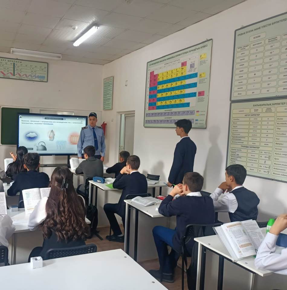Шу қаласы "Жібек жолы мектеп-лицейінде" 2023 жылдың қыркүйек айының 14 күні Шу АПБ-нің ЖПҚ ЮПТ полиция аға лейтенанты Н.Н.Өмірхан 9-11 сынып окушылары арасында "Болашак есірткісіз!", "Кәмелетке толмағандар арасындағы құқық бұзушылықтың алдын алу" тақырыптарында және де 1-5 сыныптар арасында "Жол ережесін жадыңда ұста!" тақырыптарында түсіндірме жұмыстарын жүргізді.