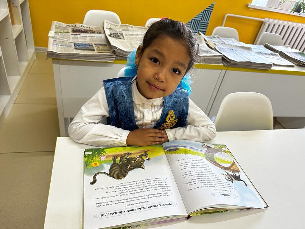 «Күзде біз жалықпаймыз, кітап оқимыз» тақырыбында “ Шу қаласы “ Жібек жолы “ мектеп - лицейінің 2 “ Б” сынып оқушысы Ерлан Інжу “ Қазақ халық ертегілері” кітабын оқуда.