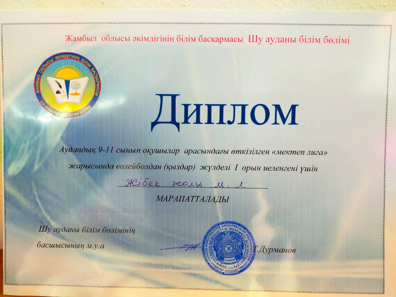 9-11 сынып арасындағы волейболдан (қыздар) өткізілген "мектеп лига" жарысының финалына өтіп, үздік 10 мектептің ішінен жүлделі I орын иеленіп, облысқа жолдама алған мектебіміздің "Волейбол" үйірмесінің оқушылар