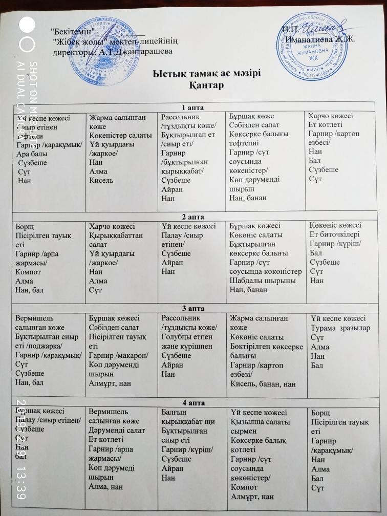 12 февраль 2019 0 1 2 3 4 5 "Жібек жолы" мектеп-лицейінің ыстық тамақ ас мәзірі Аз қамтылған оқушылар мен 1-сынып оқушыларына арналған ас мәзірі II-жарты жылдық
