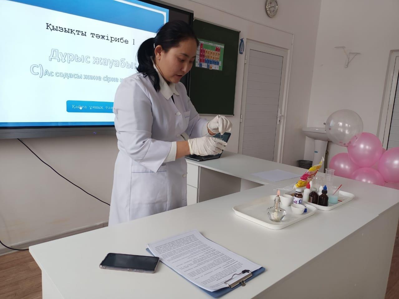 химиялық есептер мен тәжірибе көрсету арқылы ой-өрісі мен танымдық қабілеттерін арттыру ,сонымен қатар пәнге деген қызығушылықтарын жан -жақтылықтарын көрсете алды.