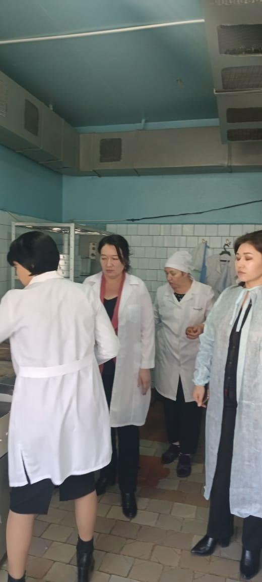 Бракераж комиссиясының мүшелері мектеп асханасының жалпы санитарлық жағдайын тексерді . Қамқоршылық кеңес төрайымы Г.О.Бейімбетова және мектеп директоры Г.Қ.Тұрлыбек әзірленіп жатқан тағамдардың дәмін татып көрді .Әзірленіп жатқан тағамдар мәзірге сай болды. Зерделеу қортындысы бойынша санитарлық жағдайы қанағаттанарлық , тамақ үлестірі нормаға сай , ешқандай шағым жоқ . Күнделікті тамақтың сынамасы алынып отырады . Ыдыстарда кетік ,сызат жоқ.
