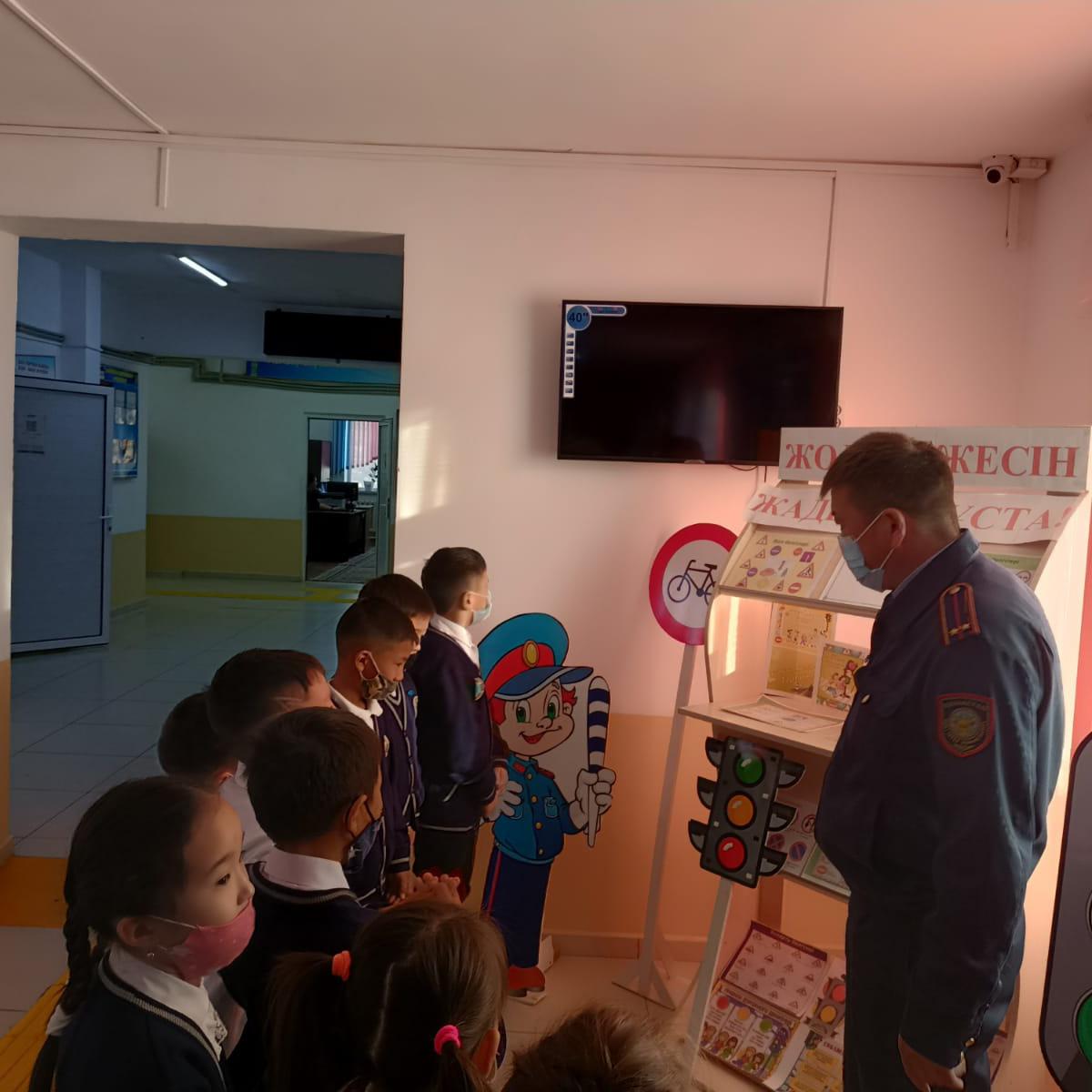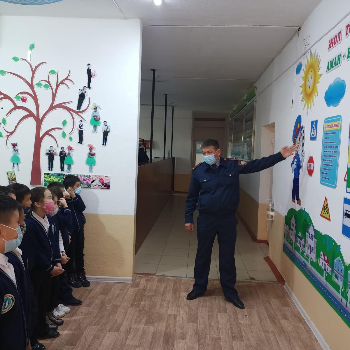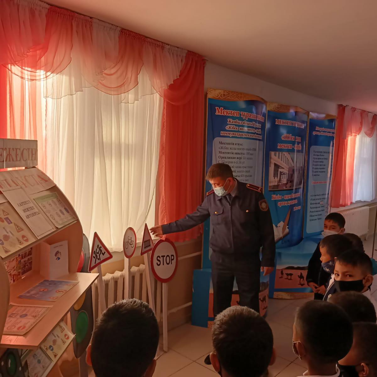 Ағымдағы жылдың 25.10.2021 ж. күні Шу қаласы "Жібек жолы мектеп-лицейінде" мектеп инспекторы А.Б.Баймухамбетов төменгі сынып оқушыларына жолда жүру айлығы аясында "Жол ережесінің маңыздылығы" тақырыбында түсіндірме жұмыстарын жүргізіп, оқушыларға жол белгілерінің атқаратын қызметі мен маңызы туралы айтып өтіп, сұрақтарына толықтай жауап беріп өтті.